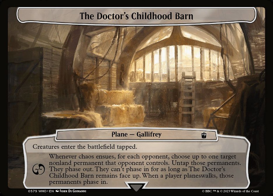 TheChirurgeon: A cool representation of one of the more touching moments of Capaldi's run on the show, where River Song finally gets that bit of romantic closure with the Doctor she (and we) had been denied for years. The "Last Night" of the two together actually lasted 12 years (nights last a long time on that planet), and I like that this card buffs a pair of creatures. And yeah, sometimes it's going to win you a game but it's mostly janky good fun.