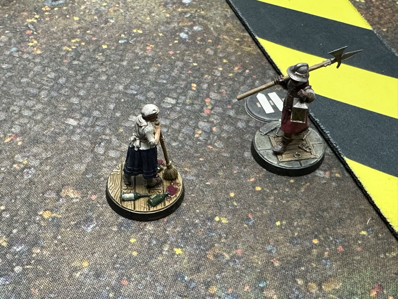 The goal here is to arrest, not kill, the town drunk, even if he is infuriatingly difficult to subdue. Credit: Eric Lofgren, models by Calvin at Nevermore Painting Studio