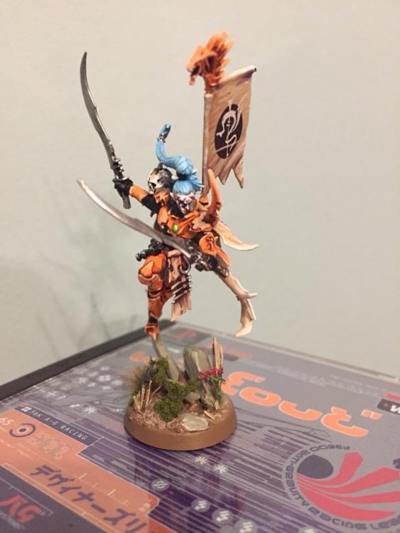 Very similar (if not the same) character featured on Warhammer Community’s article about Crucible of Battle, I had a similar take on the build using Darkstrider as the base, Using parts form the pathfinder kit and kill team upgrades, I added some bits to the rail rifle, and did some surgery on the arm for the drone controller operative, and changed it to a 2-finger point, giving him the feeling of directing fire from the pathfinder squad.