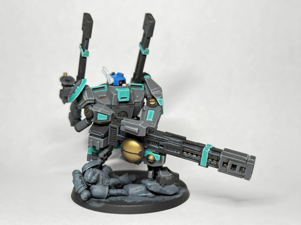 Torira was built using the base Broadside Battlesuit, but to achieve the triple railgun look, I wiped the dust off old XV-88s and harvested the rail guns and shoulder mounted it on torira, I also trimmed some plasma rifle bits and sensor arrays to beef up the look of the heavy rail rifles.