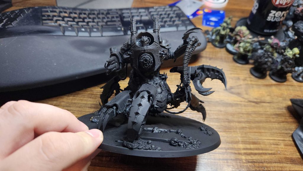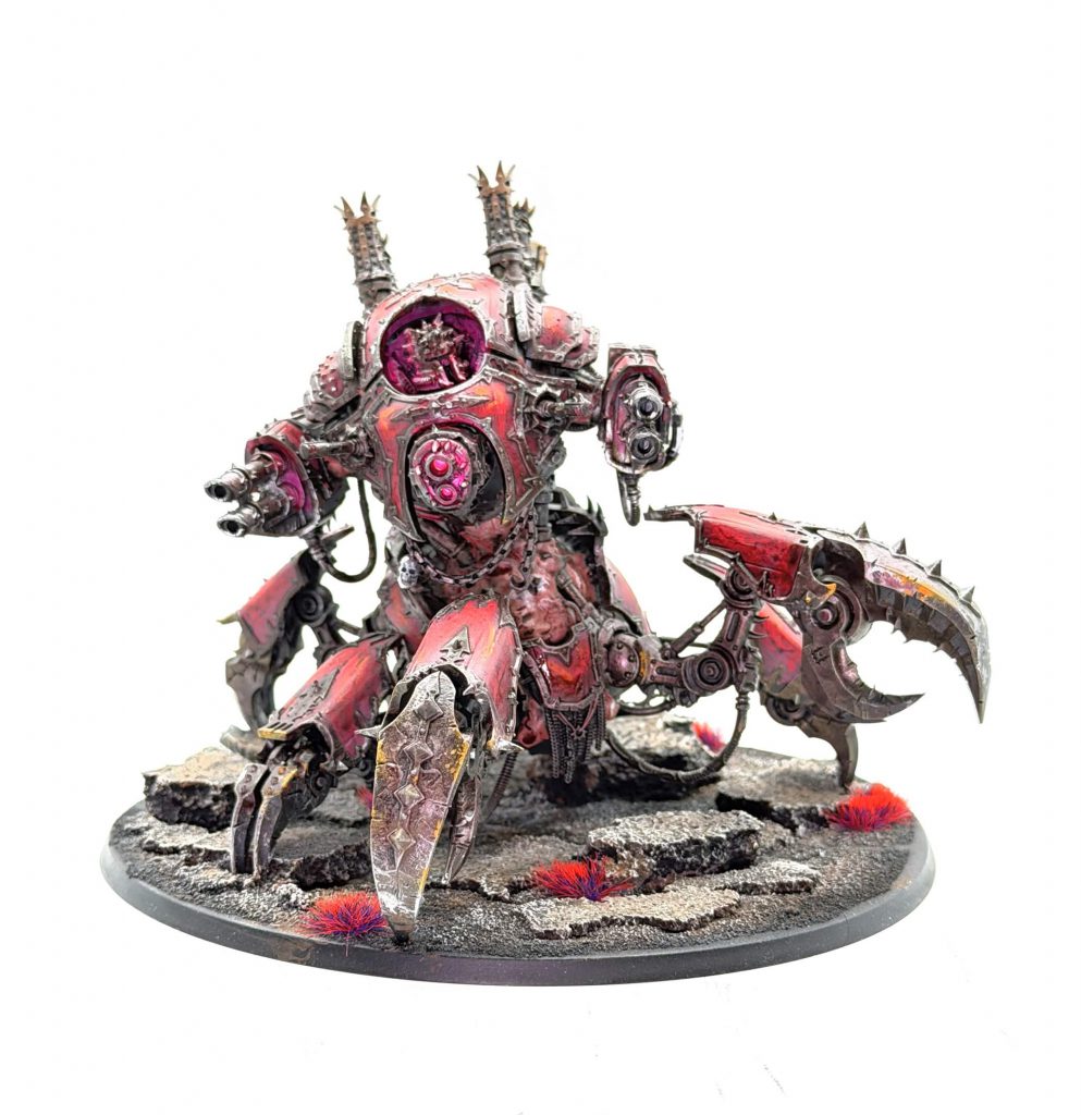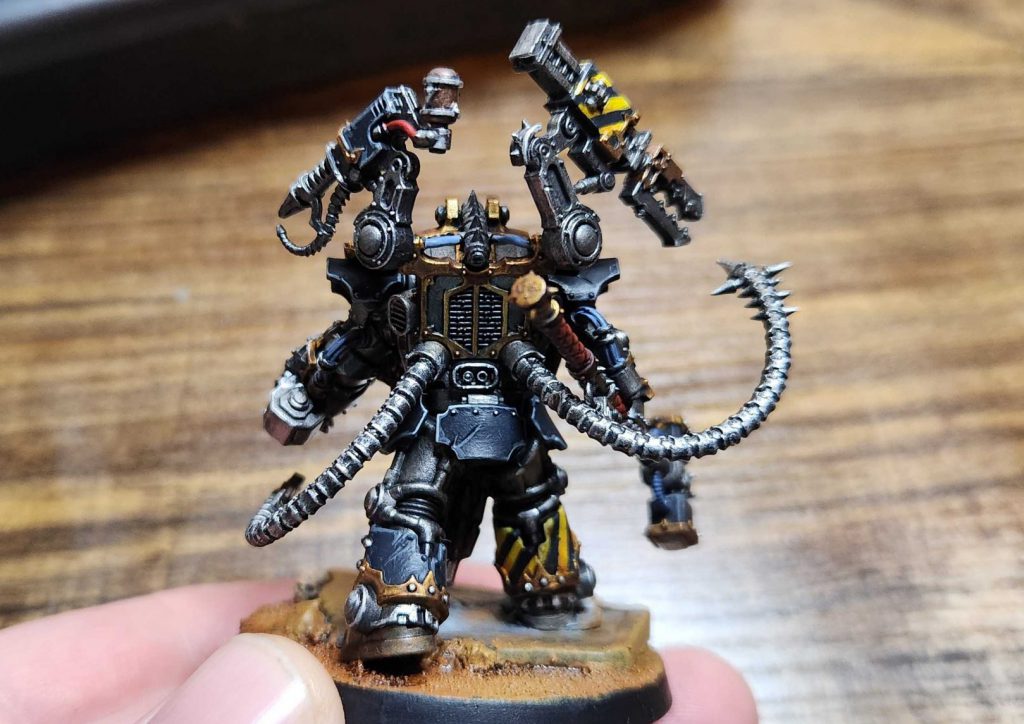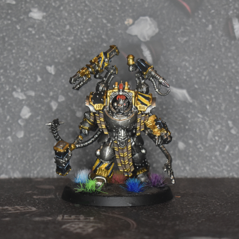 This model was pretty straightforward to assemble and paint. He doesn't come with the full hero rock you see up there - I added that myself, along with some skulls from my skulls box. The only parts that are concerning are the mechatendrils, and the one behind the hammer arm has an extra contact point to attach to, making it a bit more stable than it looks.