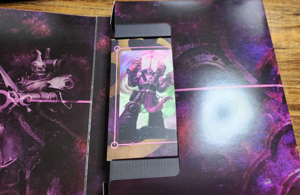 There's a cardboard spacer in there as well to hold the cards in place and stop them from sliding around. I don't expect you'll want to keep that, but the box itself is pretty nice and a good way to package your cards and codex for travel, plus you'll have extra space for dice and a measurement tool.