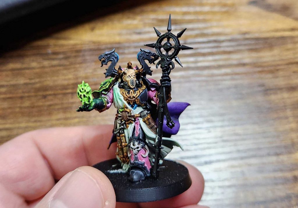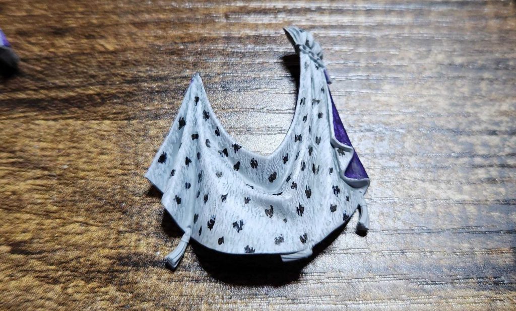 This let me get at the hidden parts of the model pretty easily and paint the underside of the cape and tabard as I went, while also letting me easily prime them a lighter color so I could do the white fur effect.