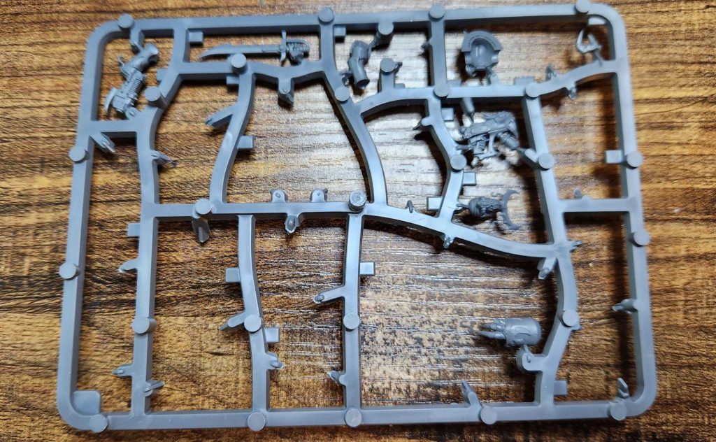 Liam: These are set up so that two sprues builds five models, so it’s a pretty dense sprue, and although the box advertises them as two units of ten you can easily build four units of five instead. There’s a decent range of head and shoulder pad options here, though they may get a little thin after a while - fortunately you have the massive CSM range to work with to get a few different choices in there. The instructions guide you to use a specific body for the Champion, mostly because he’s on a hero rock, but you don’t actually need to do that - all the options in this kit are body-agnostic, so you can swap stuff around as you please. That’ll help to keep it fresh, though again you may want to bring in CSM melta and plasma guns here for some visual differences.