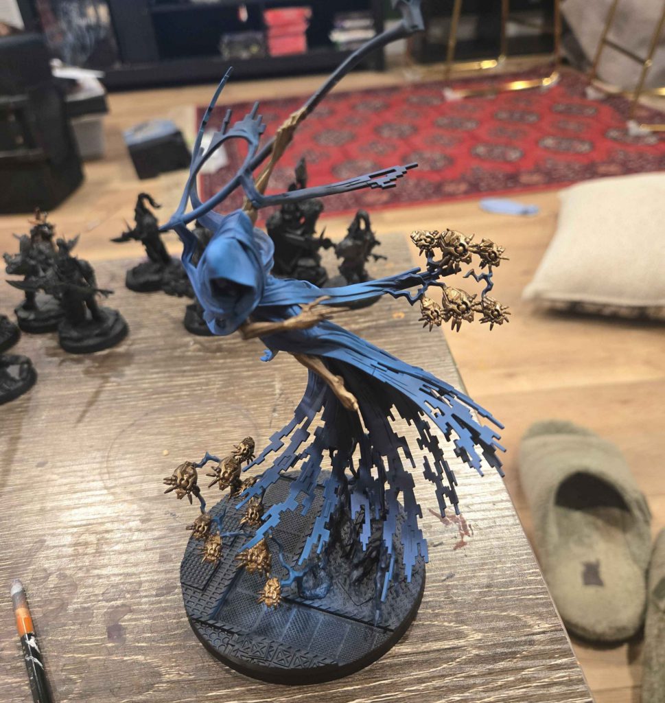 The Robe was painted with Dark Reaper before being washed back down with Nuln Oil and Corvus Black before some highlights were made with Skavenblight Dinge and Dark Reaper, I also added some washes of Barak Nar Burgundy to add some further depth.