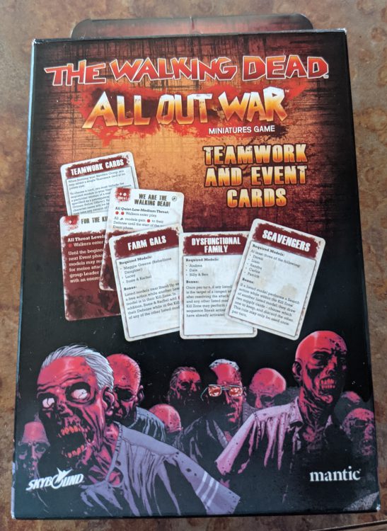 The Teamwork cards also bring something totally new to the table - small bonuses that are included if you build your force a certain way. I think they're very interesting and while some cards are more impactful than others, they're definitely story-driven and will lead to new play styles. The only thing I didn't like was that some forces have very limited Teamwork card availability - I hope Mantic makes more in the future. The Event cards are again another way to add a layer to your game. For $20 I think it's definitely worth your cash, especially if you've been hammering The Walking Dead: All Out War since release, as it'll change up the game a bit.
