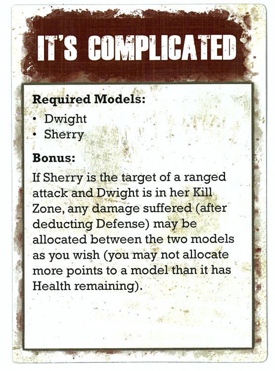 Dwight is my favorite character in the comic book so I had to spotlight this card. This is a very interesting mechanic, one I don't think has existed previously in the game. It's interesting that it is only for two of the members of the Saviors, not the entire group. This allows you to keep the two of them alive longer and definitely shows how tough their relationship is.
