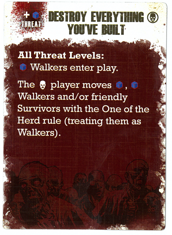 This Whisperers Faction Event Card adds a ton of threat (Blue is the highest value dice in the game), adds a ton of Walkers onto the board, and then the Whisperer player can move 2Blue Walkers or Whisperers during the Event Phase. This is a fairly powerful turn for the Whisperer player and could definitely shift the battle. It could also end the game (by moving the marker to 18 Threat) before the Whisperer player has accomplished their goals. We'll definitely be giving them a try.