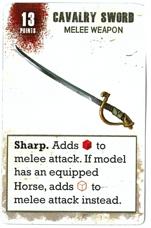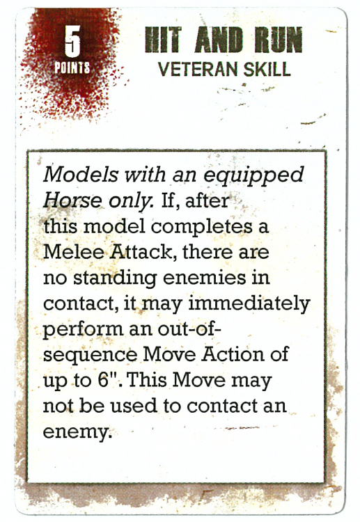 Here Comes the Cavalry, granting them an additional Red die when they make a melee attack in the same Kill Zone as another mounted friendly model.