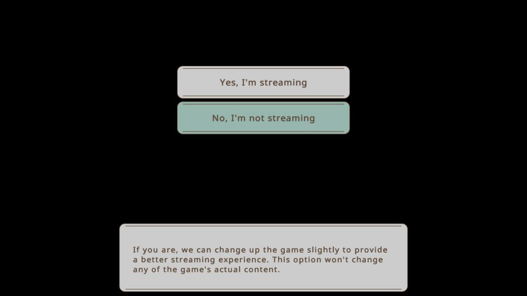 I liked the little ways in which the game changes if you are or are not streaming it; while most people won't be, it was still a cool option that shows they know their audience.