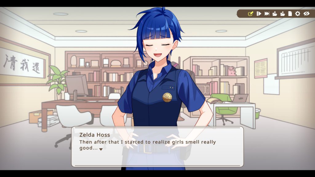 The mystery itself was also fun; I haven't quite mentioned it yet, but the game is a comedy, often taking things not overly seriously and getting somewhat meta with the narrative and game experience (the victim is a literal giant chicken, so let's be real). There is a murder at play and a crime to uncover, but the game doesn't take itself exceptionally seriously, while still ensuring that when it gets silly it doesn't get distracting. I will mention that I, personally, could probably have done without the "Flirt" text option that pops up at some point. Justin doesn't come across as a creep inherently, but the fact that you can flirt with almost every female character in the game was a little silly for me; it never took me out of the game entirely, and I debate if the developer included this as a slight meta joke about visual novel protagonists in general, but it also is the type of joke that doesn't "do" anything with it if it is being meta.