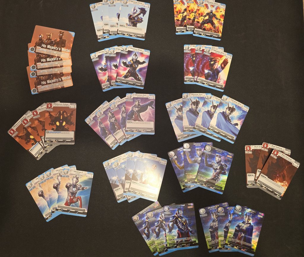 I did a bit of research into the game’s competitive meta, and 2 out of 3 battles are the standard, which makes total sense to me based on how quickly entire games could go. Since there are no “instants” or “spells” or similar cards that impact the gamestate, you also have to somewhat rely on drawing what you need rather than tutoring things up or searching through your deck, which is notable because the deck size in Ultraman is quite large: 50 cards, with 4 copies of a card allowed.