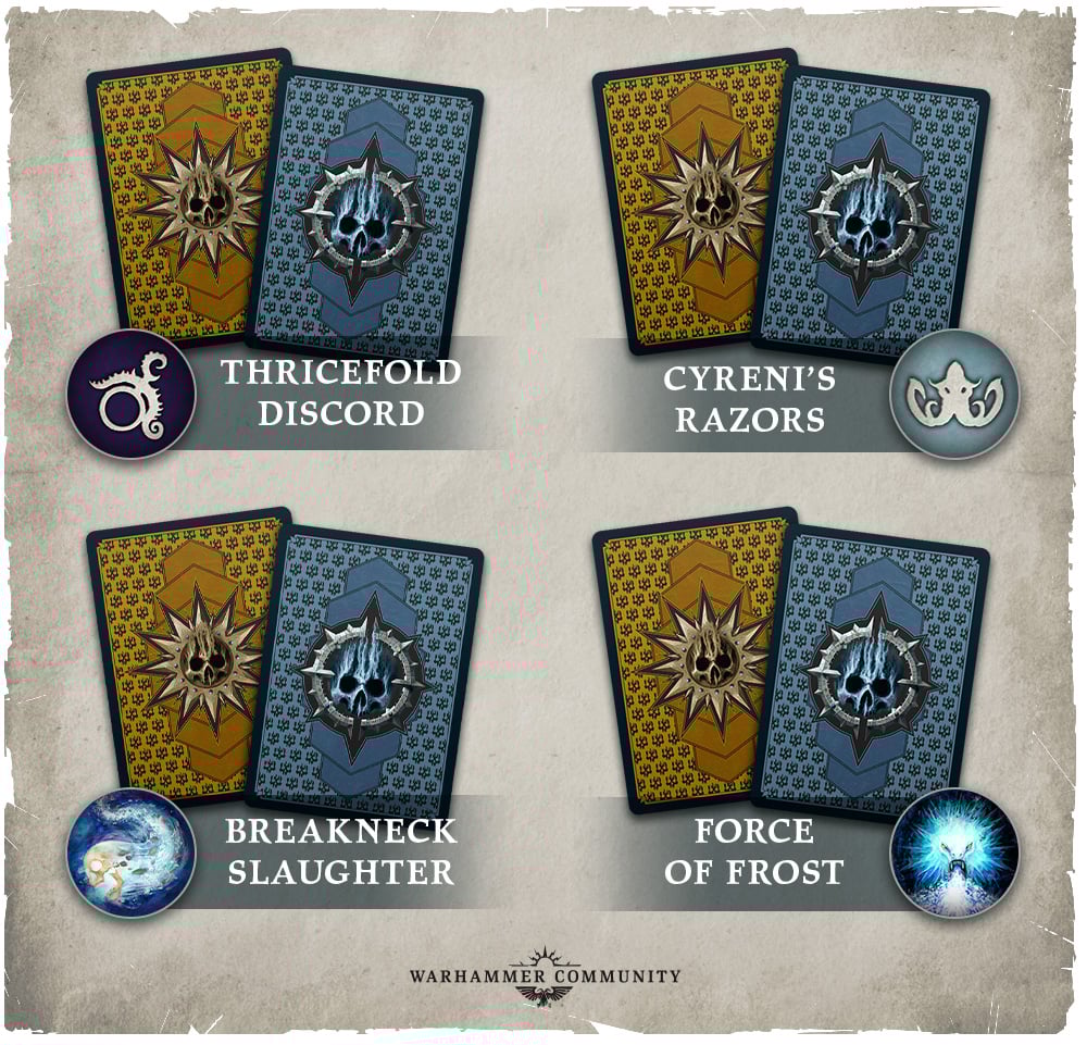Force of Frost seems like it'll help out tougher warbands to skew further. Force of Frost includes spell gambits while Breakneck Slaughter does not.
