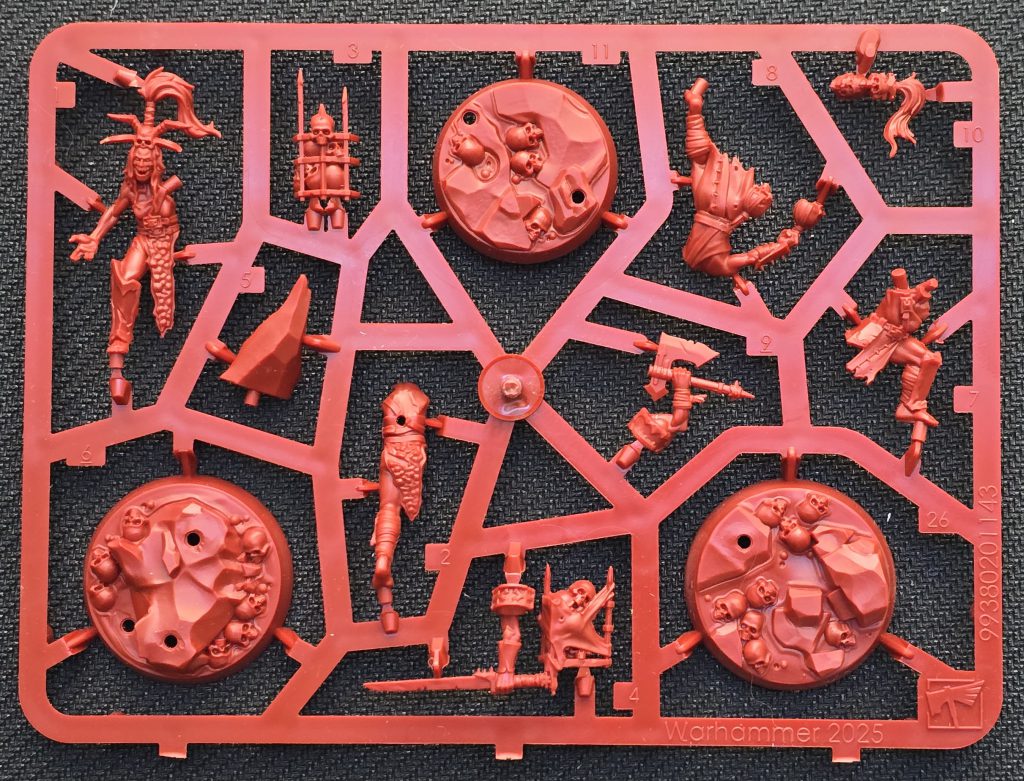 The models themselves go together quite nicely, which isn't a surprise considering the overall quality of Games Workshop kits. I didn't have to trim any of the push-to-fit pegs, the mold lines were average, and the assembly is very straightforward. The only two things that stood out to me were both on Kamandora herself. Her sword arm was a little fiddly for me to get onto the body. Additionally, during assembly you'll notice Kamandora has a hole in her back which is normally where a peg would go, but the skull basket doesn't have any corresponding peg for it so it just gets hidden without being used. Weird, but whatever.
