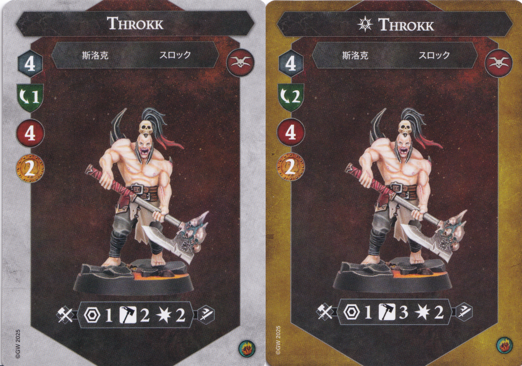 Throkk's defensive profile is similar to Kamandora's except he trades off one save dice for an extra point of health. Starting on 4 health feels like a much safer breakpoint than 3 – Throkk isn't vulnerable to a one-shot from a 2 damage fighter paired with Twist the Knife, or a one-two punch combo of a ping and follow-up 2 damage attack. That said, you'll want to inspire this guy to pick up that second save dice for sure. He, along with everyone else in the warband, has 4 move which will help leverage their desire to surgically strike as well as get into position near the worthy skull for an inspire.