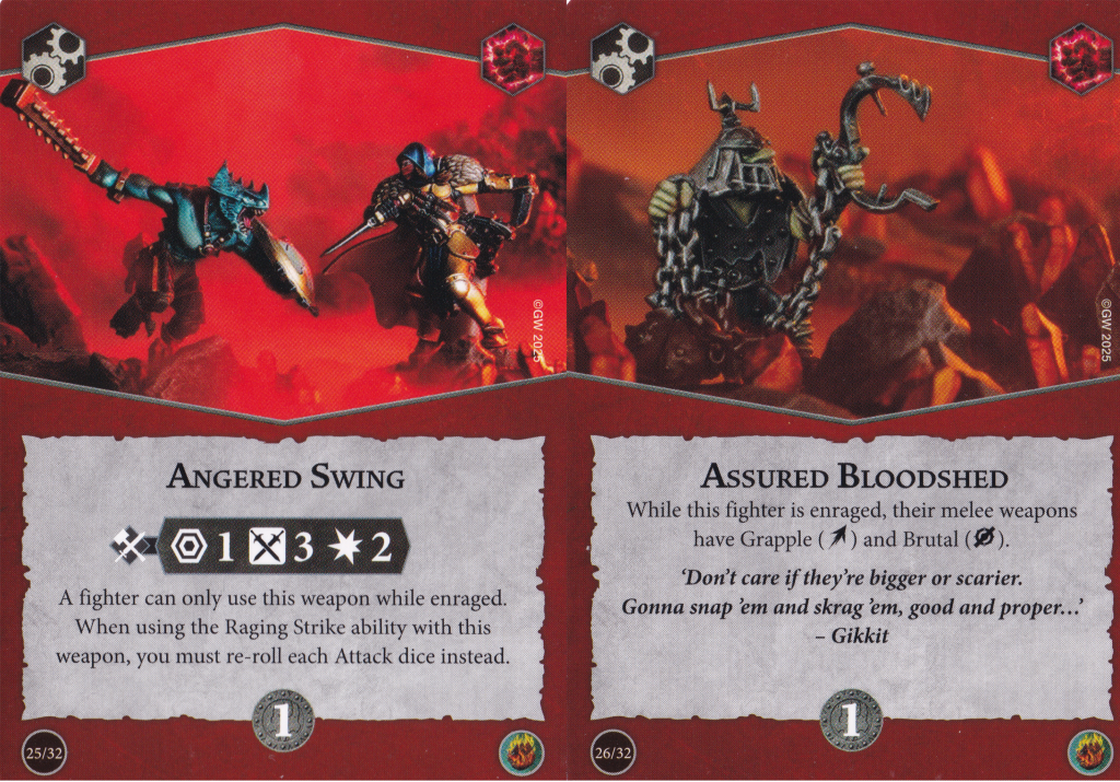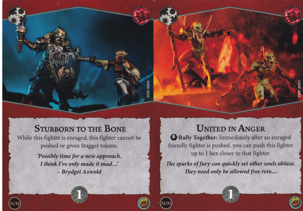 For your awareness before going into the cards, there are a number of objectives that care about fighters being enraged and power cards that can remove rage tokens for different effects. I'll point these out when they crop up. Remember, a fighter has to make a charge to gain a rage token – the enraged state has nothing to do with charge tokens themselves.