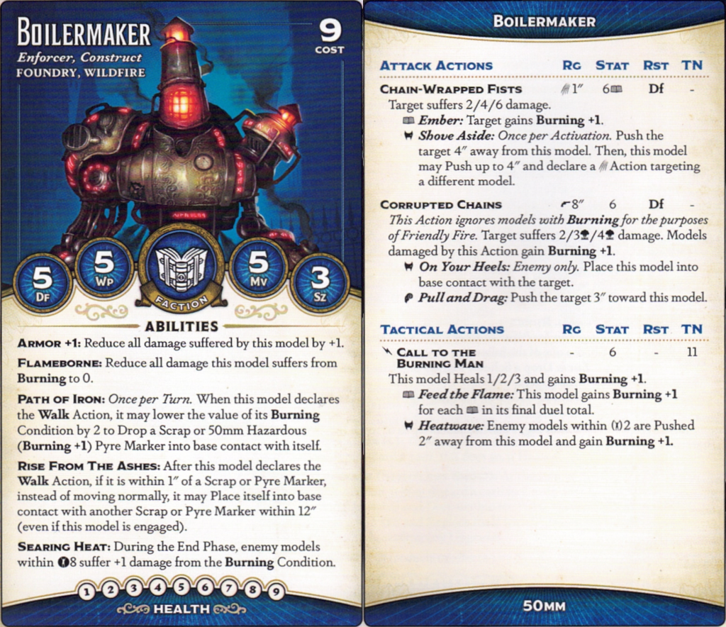 Call to the Burning Man is great as a little survivability tool that keeps you topped up on Burning, and Heatwave is a really, really strong trigger for a Tactical Action. Boilermaker can teleport right where he needs to go (say, next to a Strategy Marker in Raid the Vaults) and push enemies away.