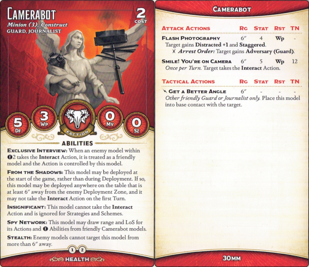 can control the Interacts of models around them with Exclusive Interview, and that's a big deal. Position one near a Ballot marker and you're forcing your opponent to remove a stubborn Stealth, Extended Reach bot before they can do anything. Camerabots are