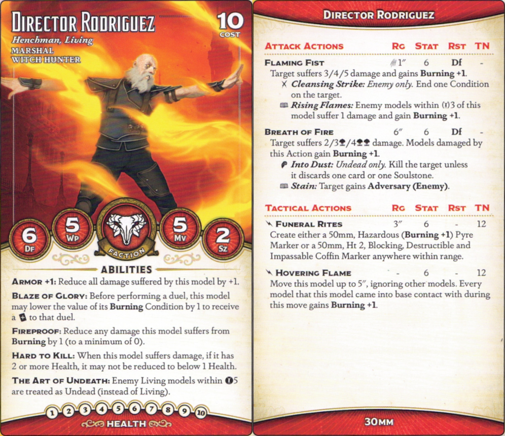 is Execute, because of The Art of Undeath), and Stain being close to a "delete this model" trigger as well. It's always been let down by its short range, but Rodriguez has that handled, too, with Hovering Flame. That's an absolutely bananas bonus action, a 5" move in any direction ignoring models, and it's doubly scary on a brick shithouse like Rodriguez.