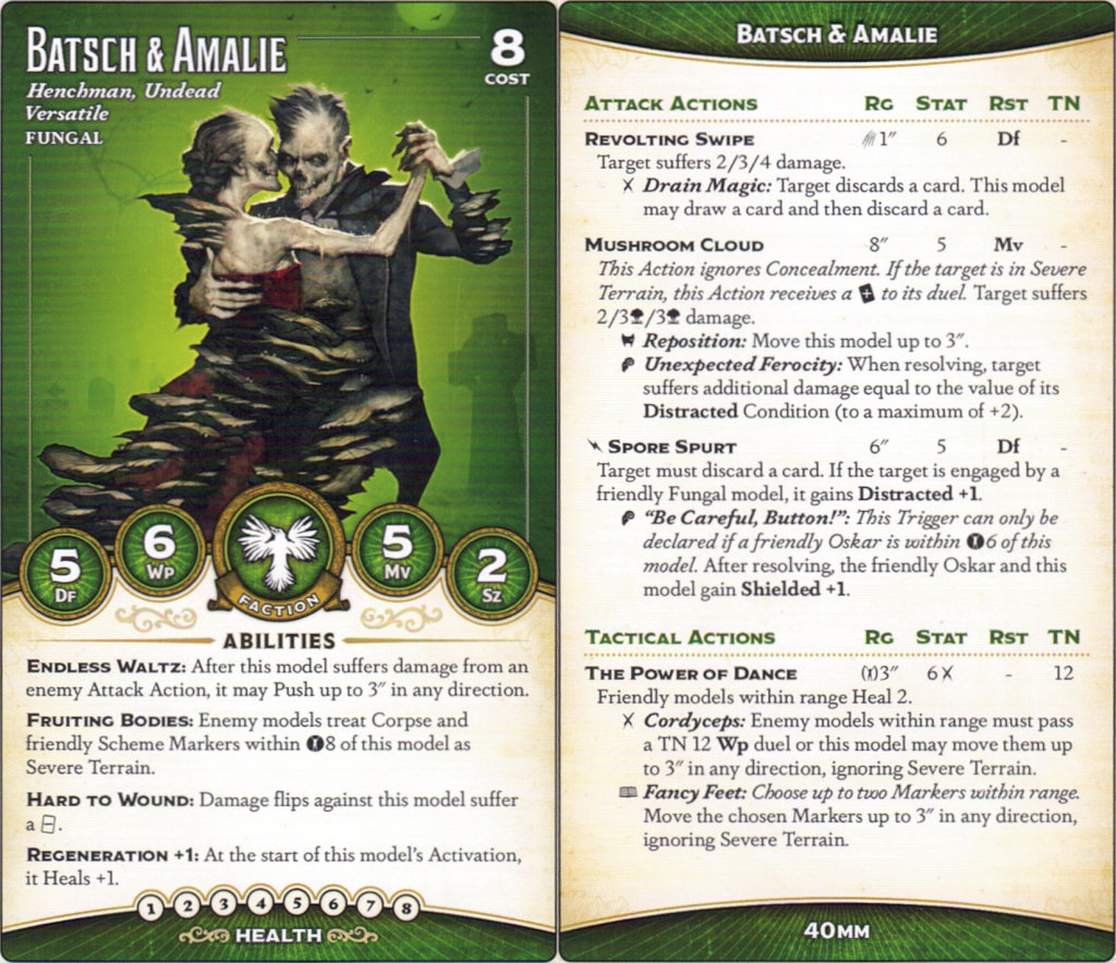 Batsch and Amalie came to Malifaux during the time of the first Great Breach – not to get rich, but to investigate the flora of the new world. The University of Jena’s mycological expedition went looking for ‘shrooms in the Bayou and, predictably, found a bit more than that, including a sticky end. But death is just the beginning in Malifaux, especially when magical fungus finds such ripe bodies to exploit.