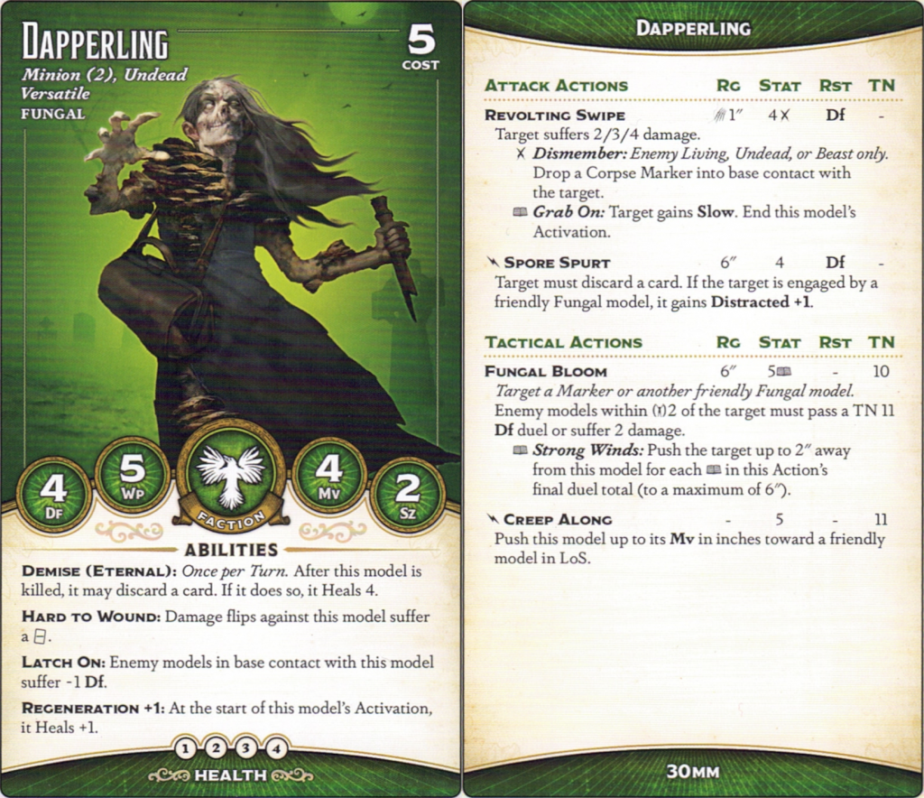 The Leftovers isn’t embarrassing for 8ss, at least. Df 4 isn’t great, but it’s typical for Ressers, and the requisite Hard to Wound means Min 2 attacks will take a while to chew through this thing. Bloated Stench also lightly punishes opponents who try to take this thing out in melee. Actually, melee is where enemies really don’t want to be – Futile Struggle does a good impression of applying Staggered (though remember that it requires base to base contact, while the Leftovers technically has a 1” engage.