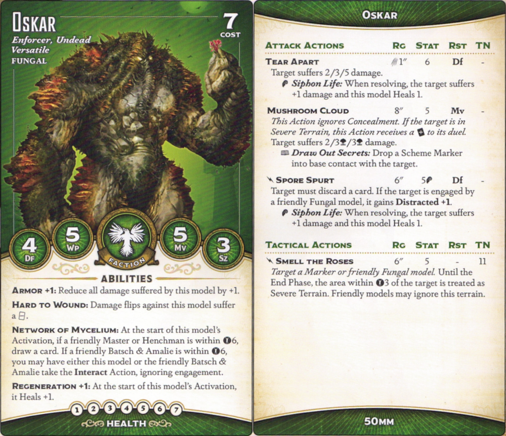 If that was all they did, it would be enough, but they’re actually kind of solid – sure, their attacks are only Stat 4, but you throw enough mud at a wall and some of it will stick (and Latch On helps). Creep Along is great, basically giving them three AP for a very modest TN, and Fungal Bloom lets them mess with enemy scoring by pushing markers around.
