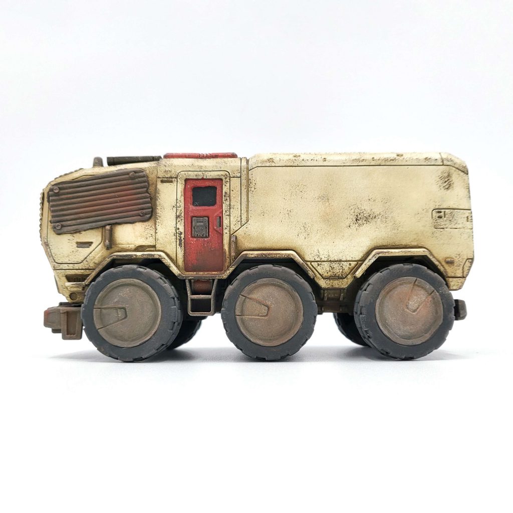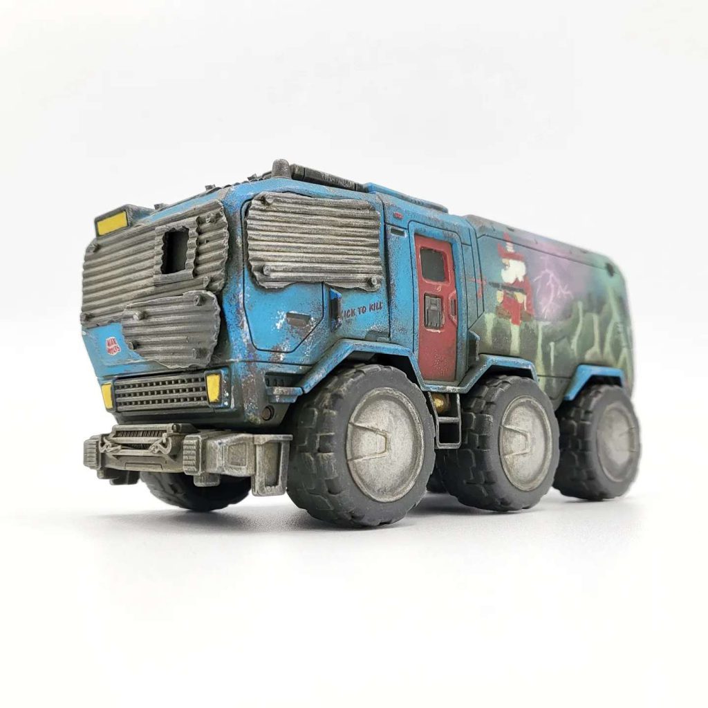 Very minimal work is needed to get painting - you could leave the clear plastic windscreen if desired, or put in some minimal effort to glue some corrugated plasticard or paper on to make it "wasteland-ier". You can still pick these up in the states for a song - cannot recommend them enough if you are interested. The ATVs and dropship in this series are also great fits for scale. Check out