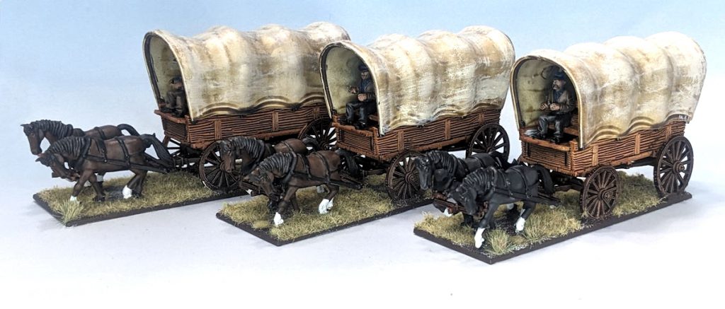 review here) that I had to grab three and I might get some more at some point. Having a big ole' wagon train to defend would be super super cool. The kit is well-priced, goes together easily, and paints well. Grab this kit for your black powder era fights and go west, young goon.