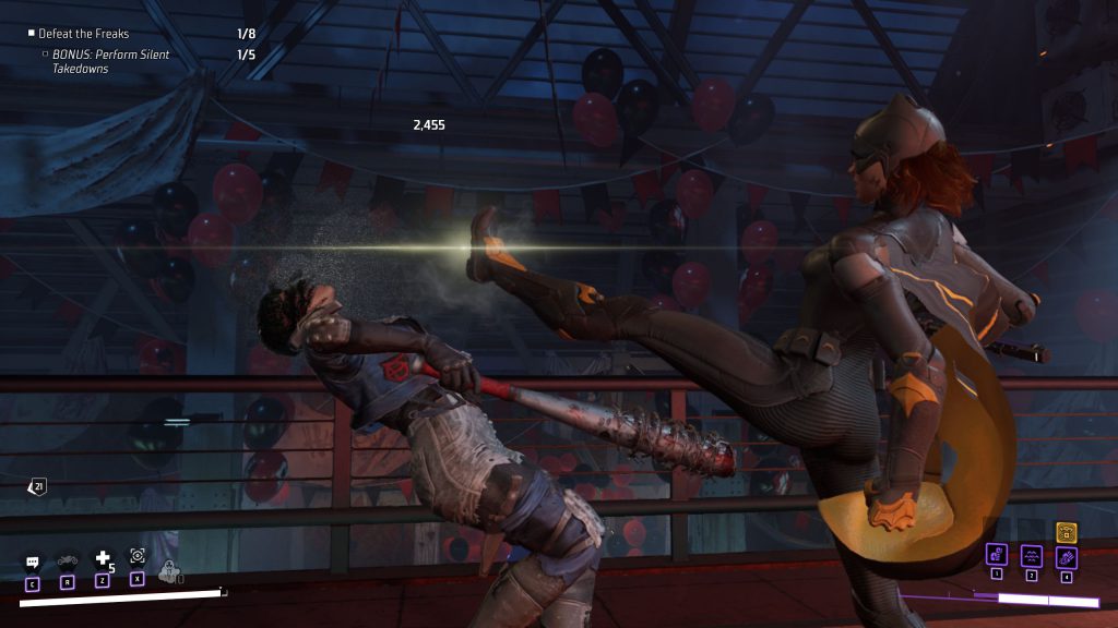 The conceit of the game is that you can play every mission as whatever character you please, though, and you shouldn’t actually play every mission as Jason. In fact, the best character to play the first mission in the Iceberg Lounge is young Tim. The game kind of telegraphs that -- there’s some banter about Batman never letting Tim come with him to the Penguin’s nightclub when he was sidekicking it as Robin -- and when the game gives you nudges like that you should listen. Similarly, when the game involves Harley Quinn, Batgirl is probably your best go-to. There’s not a lot of subtlety here. The character writing is very, very good; the best they can do with some of the weakest villains in the Batfamily and bizarrely with some sort of apparent edict to more or less ignore the Babs and Dick relationship that just about anyone who picks up this title is going to expect will be featured. I’ve played 50 hours in the game and haven’t seen literally every character scene that matters, but you can only tell those two characters used to be madly in love by the fact that Babs still knows Dick’s go-to fast food lunch order. There are very clear hints, but only if you’re looking for them.