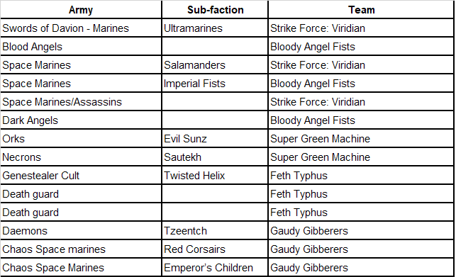 Strike Force: Viridian, which being obviously the coolest name and having the most armies painted green guaranteed us victory.