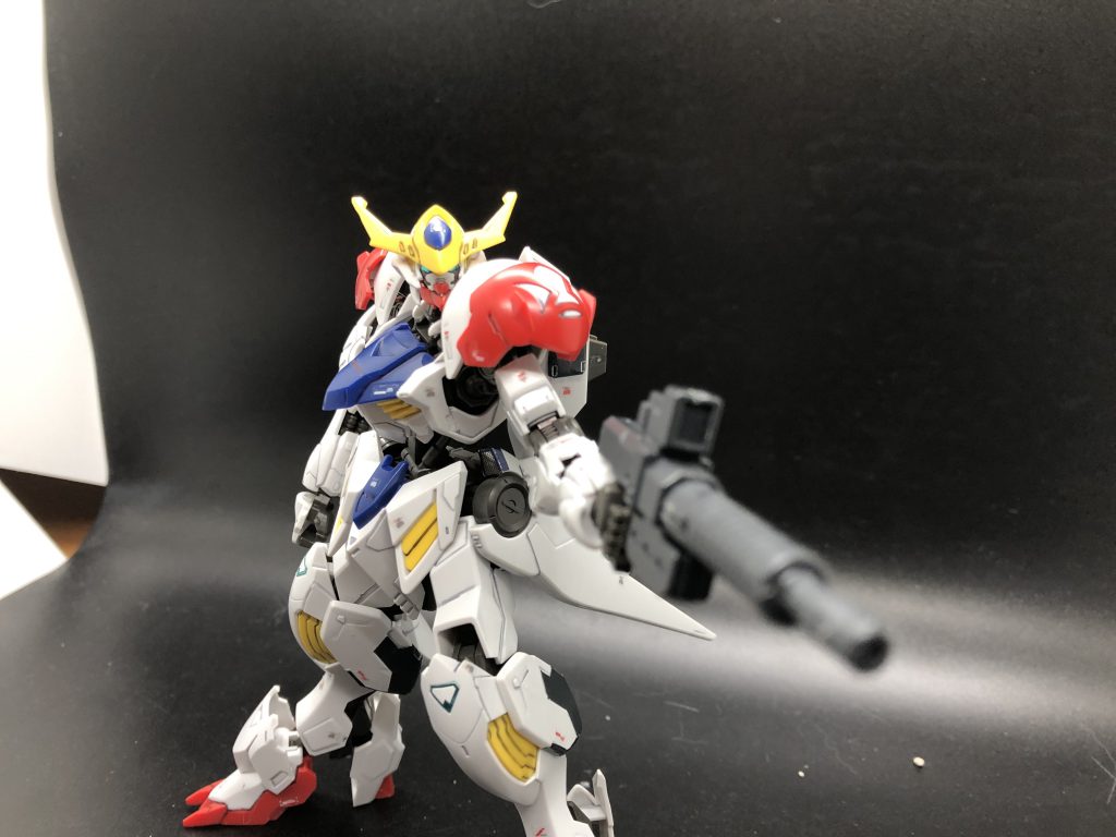 Holding the beam rifle from the HG Leo. Bandai's HG IBO Barbatos Lupus