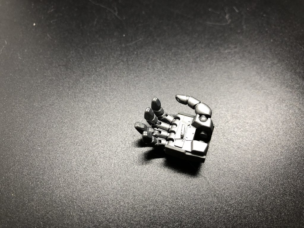 Unfortunately this isn’t new enough to have the new swappable hands. They have a ball-jointed thumb, and hinges on two spots on each other finger. The fingers come as a separate trigger finger and three conjoined fingers, but it’s easy enough to split them and have a fully poseable hand. These hands are not good. It seems like they should be! I get it, you can move the fingers around however you want! The actual reality is that the fingers fall off all the time. They end up being less expressive than multiple fixed-pose hands would have been, because they don't bend far enough, and going the other direction, can't be straightened out all the way either. These aren't the Perfect Grade hands, which actually deliver on that promise, they're just kind of bad. They don’t even hold the weapons very well - the small tab in the palm that slots into the weapons never seems to work very well. This is not, to be clear, not a problem unique to this kit. Every Master Grade of this vintage has these style of hand. None of them are good.