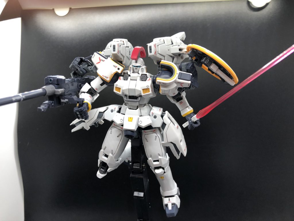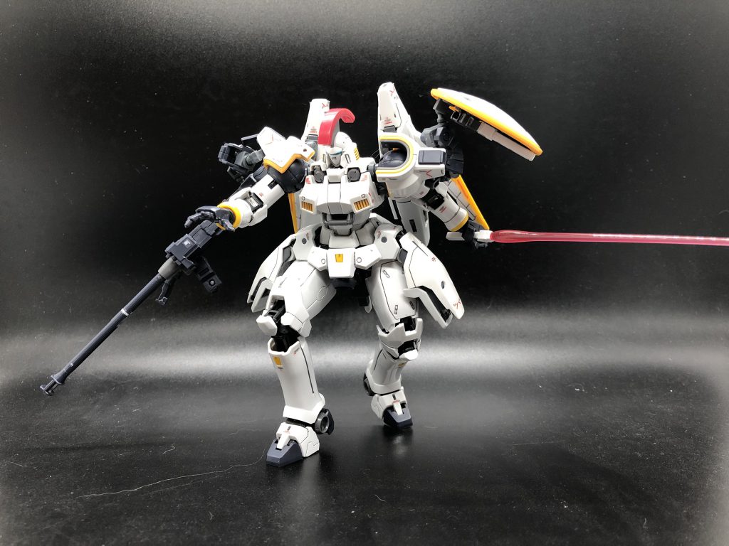 This is mostly an out-of-box build, including all of the sticker-decals. I did panel line it, but there aren't a ton of panel lines. Otherwise I made no extra effort - usually a matte varnish is a good idea, to make the plastic look less like plastic, but with the armor on the Tallgeese it was better to leave it glossy.