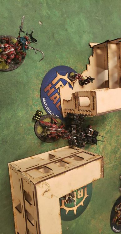 All I had left, was Sammy on his Bike, both Talon Masters and a single Dark Angel Veteran who had been hiding the entire game. To win the game, I had to kill his Knight and table him on 6. If I didn't, that was it. A new Hog would be born, but no Piglet earns his tusks without some blood.