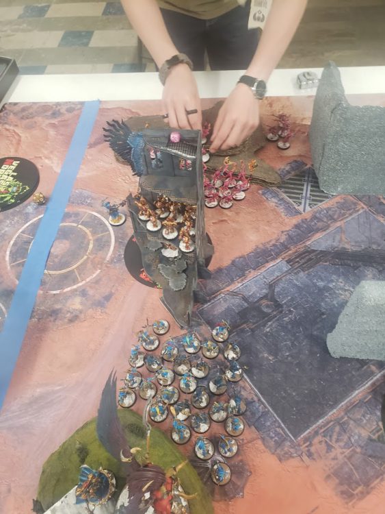 The hordes of Tzeentch set up.