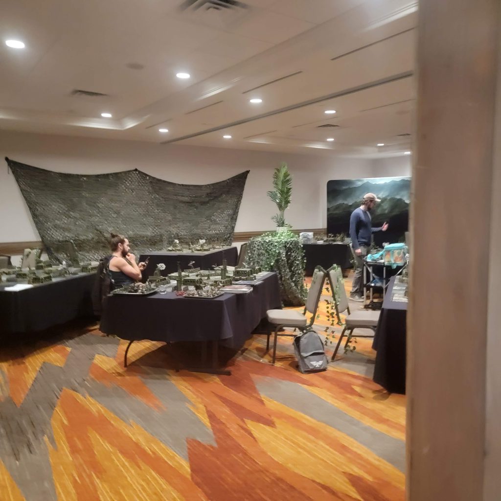 As I had said before arriving, I had some friendly neighborhood interlopers offer me rides to the venue. Unfortunately, due to it being incredibly early in the morning with my arrival time, and the event very soon starting, I waved off their offers, instead asking them to prepare for the day of war ahead. I was met by one of the Goon wives, who was an absolute delight and was able to deliver me to the location, even giving me a bit of a tour of the area before arrival. Once she delivered me to the spa, I did not have very much time to get myself pointed in the right direction to unpack and get my army ready. I went up to the front desk, shouting the first name of the person that I had been staying with and essentially charming my way into that hotel room. The clerk had so casually handed me the keys to the room of the person that I was staying with that I could only imagine that my exasperated pleas and disheveled appearance were proof enough of the validity of my claim. They didn't ask for ID, no call to the holder of the room; just my passion, and my need to check that my army was OK must have seemed desperate enough that I had to have been telling the truth.