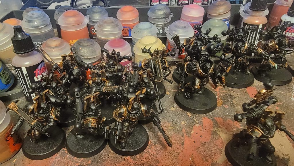 This made the entire process very fun and engaging in the long run as I saw the models become more and more complete. The skin on the master of Executions is an excellent example, where just little touches on the cloak looked more impressive and leather-like than I had anticipated. This made the entire process very fun and engaging in the long run as I saw the models become more and more complete. The skin on the master of Executions is an excellent example, where just little touches on the cloak looked much more impressive and leather-like than I had anticipated. I made real-looking leather using flesh paint, painted over with the exceptional Guilliman Flesh contrast paint.