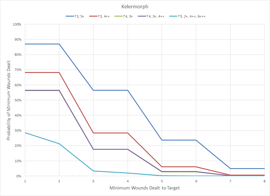 Distribution of minimum wounds for a Kelermorph attacking with its pistols.