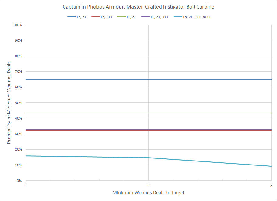 Distribution of minimum wounds for a Space Marine Phobos Captain firing his bolt carbine.