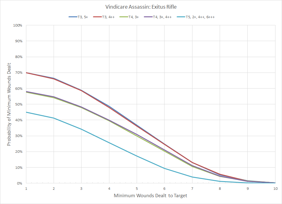 Distribution of minimum wounds for a Vindicare Assassin.