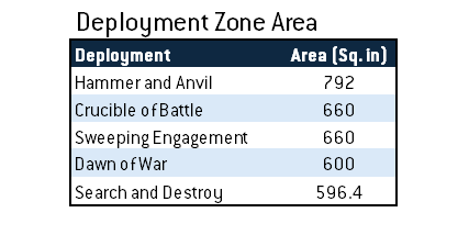 Some deployments are a little better than others for scoring, and Dawn of War seems to be particularly bad for Fixed scoring at the moment - though there are confounding factors here. One is the area - The Dawn of War Deployment Map offers the second-smallest deployment zones in terms of total area, while also being much more spread out than Search and Destroy, where Deployment Zones are only 18" apart. This can make it harder to score Behind Enemy Lines and Deploy Teleport Homers, and Homers is a much less popular pick on Dawn of War Deployments.