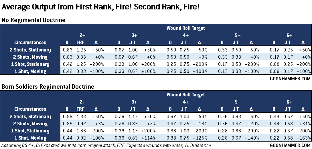 Born Soldiers Regimental Doctrine. Note the synergy between the order and doctrine against heavier targets, where even when moving the order can provide a massive bonus against hard to wound targets.