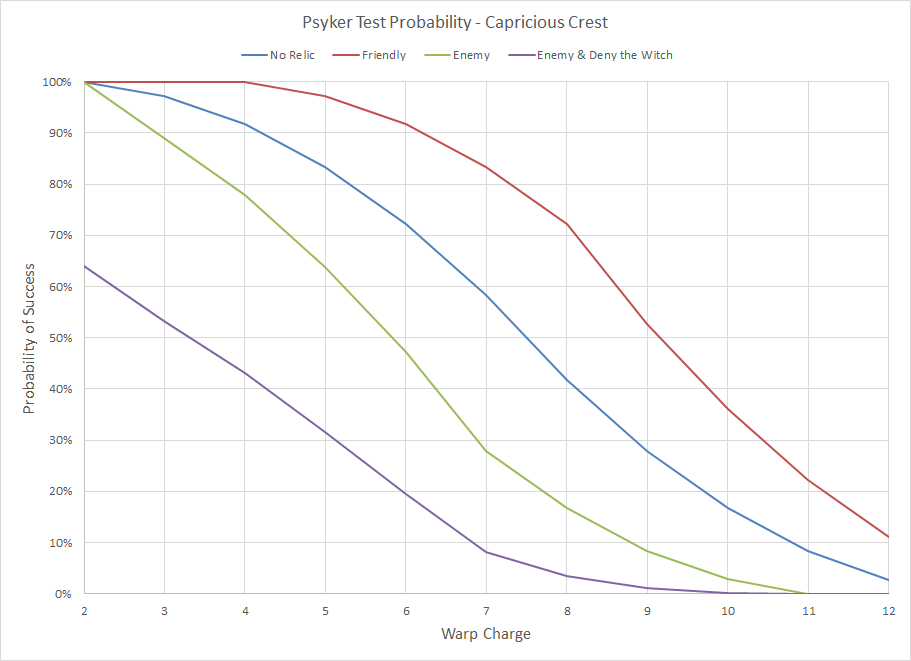 As we can see below the impact is significant: On your side, the chance of success on powers skyrockets, with a warp charge 9 power succeeding half the time - very handy given how high the warp charge cost on many of the