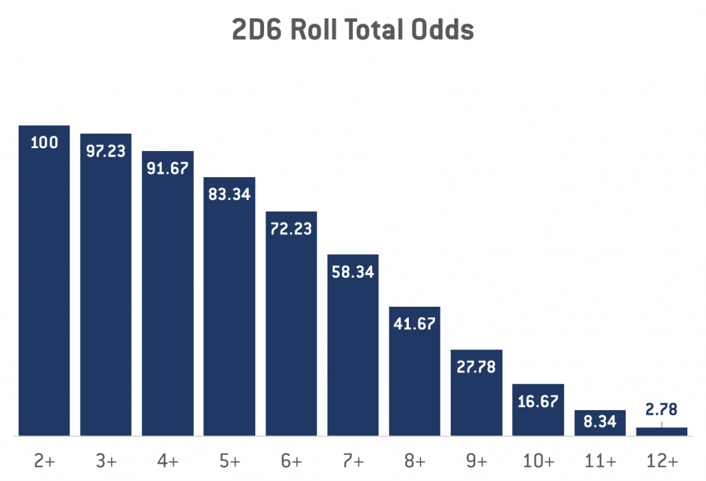 Going back to that 30 bolter attacks, when we drop the hit roll from 3+ to 5+ we halve the number of expected incoming wounds, from 2.2 to 1.1. Going back to our War Walker example, that puts the odds of taking two hits at only 26%, while our odds of taking no hits increases to 44%.