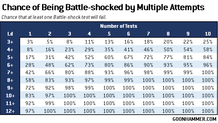 Your chances of forcing a fail improve as you force multiple tests, but they're also heavily dependent on that ability to reduce enemy leadership. In this case, -1 is significant, but that's not the only debuff you can apply: The Noxious Blightbringer is a stealthy pick here as his