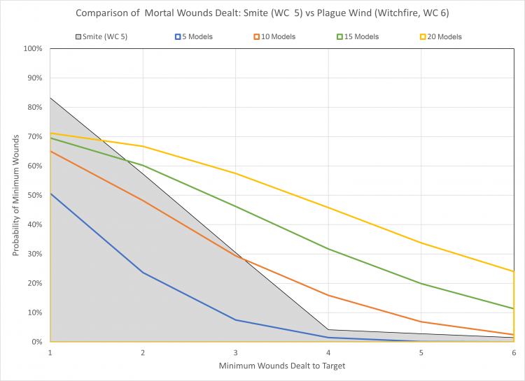 Plague Wind, where every model in the unit rolls a D6 and every result of 6 (or 5+ if the Psychic test was 9+) results in a mortal wound. As usual for powers like these the effect doesn't really compare with