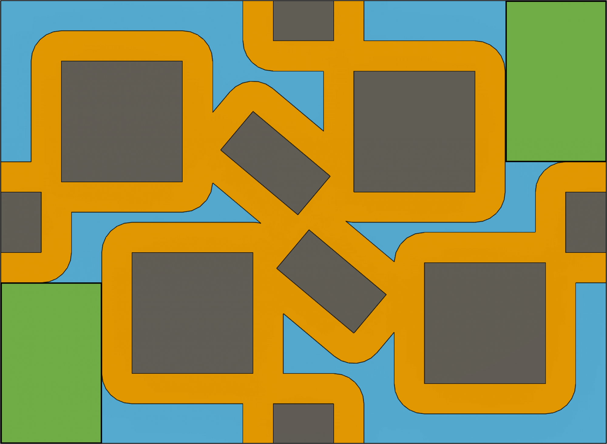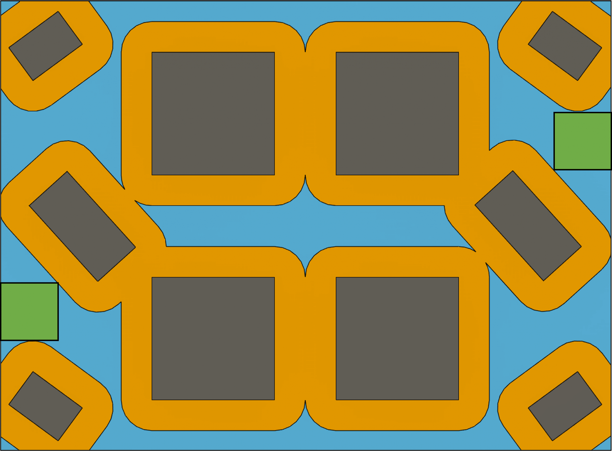 Fortification exclusion map for Terrain Layout 2 of the 20210 GW Open.