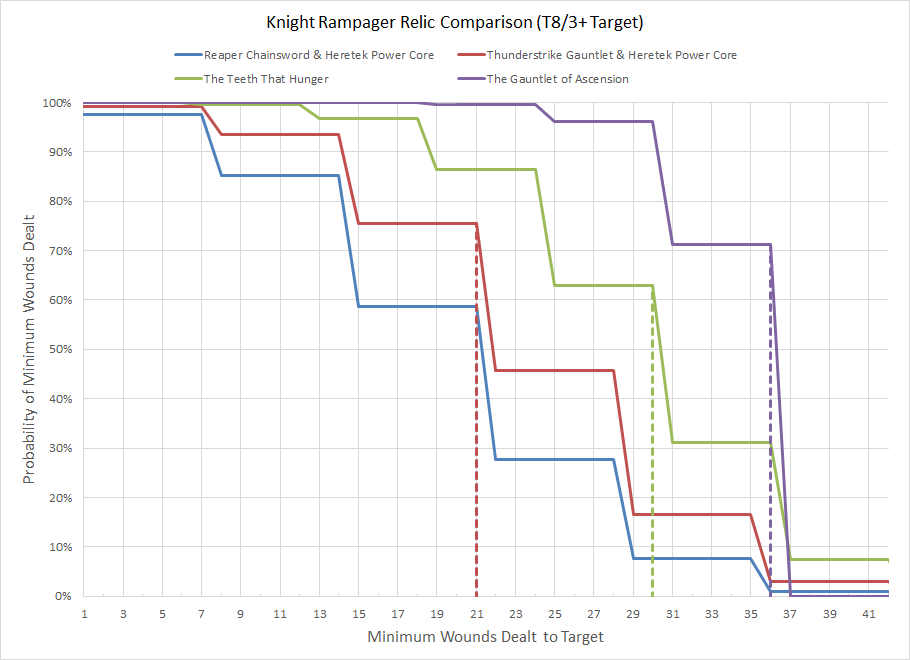The Gauntlet of Ascension which allows the bearer to re-roll hit and wound rolls (and also makes the bearer nastier every time it kills a CHARACTER). So which of these three Relics are the most effective? We'll assume that the bearer is a Knight Rampager with the