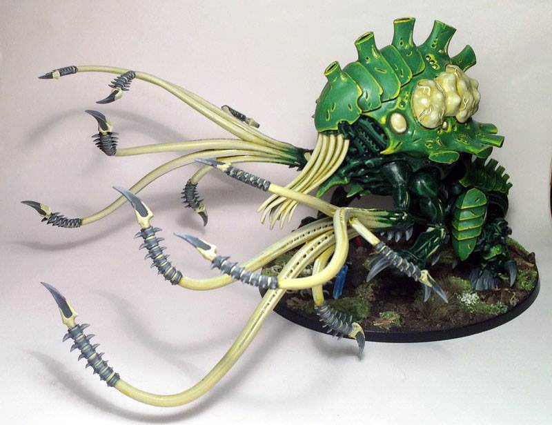 Old One Eye could be even more terrifying. He could boost his crushing claws (S15, AP -4, D4, but -1 to hit) or his monstrous scything talons (S8, AP -4, D4, re-roll 1s to hit). Against T8 the Unstoppable Hunger power would also be of use. An alternative configuration is with a custom Hive Fleet; giving him