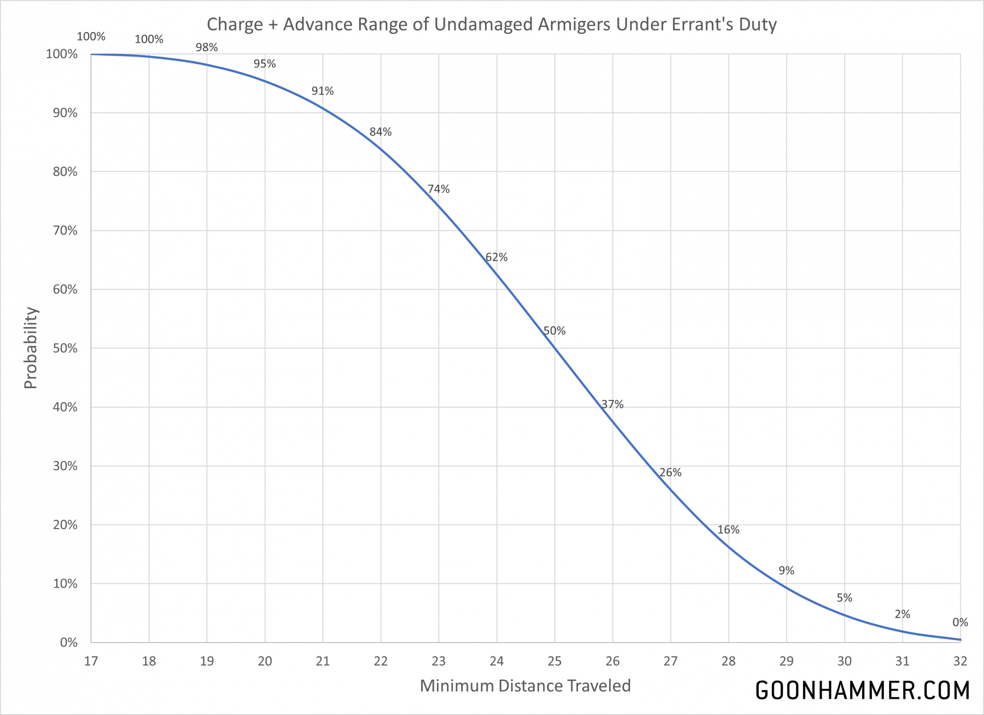 The Knight Errant has Errant's Duty, which has the dual benefits of enabling a unit to charge in the turn that it advanced and adding 1 to any Advance and Charge roll made for that unit. Obviously preferable on a Warglaive, this allows an unwounded unit to have an with a total charge range of 14 + 3d6 inches. This effectively guarantees that the Armiger will be able to charge anything within 18", and will be able to charge something 25" away the majority of the time.